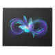 Infinity symbol with magical, purple glowing butterfly with transparent wings, on black background. Glowing butterfly.