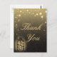 A glowing glass jar of golden yellow fireflies on a dark night background speckled with stars. An elegant and nostalgic design that reminds of summertime when the lightning bugs glow and light up the warm summer nights. A customizable thank you message is inscribed in yellow gold colour in a flowing script font. You can personalize the message to include a name or change the message to say something like happy birthday or congratulations.
