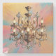 This striking image showcases an iconic chandelier, its intricate crystals and radiant lights meticulously detailed in fine lines. Bathed in golden hues, the chandelier embodies luxury and sophistication, creating a mesmerizing interplay of light and shadow against a soft, light-coloured background.
