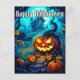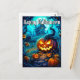 This unique Happy Halloween postcard features an illustration of some spooky glowing pumpkins, in the forest, after dark. Please feel free to adjust all the available options as you wish.