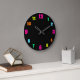 This stylish wall clock features a solid black background with bright rainbow neon colored numbers. The bright colors look like they are glowing against the black. The colors appear in pink, blue, green, orange, and yellow.