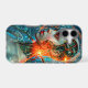 Protect your essential everyday technology while showcasing your passion for the futuristic cyberpunk aesthetic. This premium tough phone case acts as the absolute perfect vertical canvas for this cutting-edge sci-fi artwork. Positioned perfectly on the back of your device, the highly detailed image of a biomechanical female cyborg, complete with glowing neon orange neural sparks and cyan holograms, turns your phone into a striking, high-tech communication device straight out of the future.