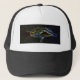 A dolphin outlined in a neon glow, swims out of the darkness and into view, leaving in its wake a trail of digital swirls.