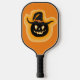Glowing Pumpkin Witch On Orange Pickleball Paddle