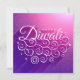 Beautiful Glowing Purple flourishing Rangoli Happy Diwali invitation square card with a long shadow. There's no reason why you shouldn't invite your friends and relatives over to celebrate this biggest and brightest of all Hindu festivals.