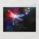 Glowing, flying, red dragonfly, with transparent, detailed wings on dark, nocturnal, luminous background with tropical plants and fireflies. Red dragonfly.