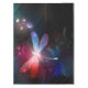 Glowing, flying, red dragonfly, with transparent, detailed wings on dark, nocturnal, luminous background with tropical plants and fireflies. Red dragonfly.