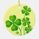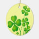 Round ceramic ornament with an image, on both sides, of glowing green shamrocks on yellow. See the entire St. Patrick’s Day Ornament collection under the HOME category in the HOLIDAYS section.