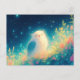 Glowy White Owl in Starry Night Meadow Postcard