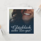 Kompliment Karte mit lachendem Frauengesicht und handschriftlichen Grüßen auf der Vorderseite der Karte. Restliche Flächen stehen zur freien Verfügung.