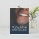 Kompliment Karte mit lachendem Frauengesicht und handschriftlichen Grüßen auf der Vorderseite der Karte. Restliche Flächen stehen zur freien Verfügung.