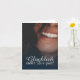 Kompliment Karte mit lachendem Frauengesicht und handschriftlichen Grüßen auf der Vorderseite der Karte. Restliche Flächen stehen zur freien Verfügung.