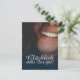Kompliment Karte mit lachendem Frauengesicht und handschriftlichen Grüßen auf der Vorderseite der Karte. Restliche Flächen stehen zur freien Verfügung.