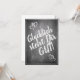 Kompliment Karte mit handschriftlichen Grüßen im Kreidetafelstil auf der Vorderseite der Karte. Restliche Flächen stehen zur freien Verfügung.