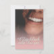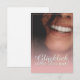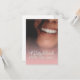 Kompliment Karte mit lachendem Frauengesicht und handschriftlichen Grüßen auf der Vorderseite der Karte. Restliche Flächen stehen zur freien Verfügung.