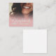 Kompliment Karte mit lachendem Frauengesicht und handschriftlichen Grüßen auf der Vorderseite der Karte. Restliche Flächen stehen zur freien Verfügung.