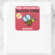 Bright Red celiac alert stickers. This little bee is gluten free. Bright design with yellow bumblebee helps alert others of dietary restrictions. Red bold 'no gluten' on red chevron stripe background. Great for kids with celiac disease to attach to lunchbox, book bag or safe snack box kept at school. Customize with name or other text or edit to remove name. Designs by Lil Allergy Advocates www.lilallergyadvocates.com