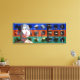 Pour cela, je propose un cadre (et même plusieurs cadres superposés et légèrement transparents) pour créer une composition unique et originale. Ces cadres sont au nombre de 24 pour les 24 heures de la journée humaine.Ces cadres sont de formes géométriques: cercle, carré et octogone. Les cercles se déclinent en dégradé dans les tons de bleu, les carrés dans les tons orangés et les octogones en vert bleu émeraude. Le choix des couleurs et des formes s'accordent en 3 types de "moment" constituant un jour: soit 8heures de sommeil, 8 heures de travail et 8 heures de "détente", les repas sont comptés dans ce moment détente A cela s'ajoute 7 "Objets" (à la fois des objets que j'ai possédé ou qui étaient chez moi, que j'ai pris en photo et quelquefois des morceaux de mes propres travaux: ici il s'agit d'un série de livres miniatures. L'image de la poupée est une oeuvre en céramique qu'une amie artiste australienne m'a donnée. Chaque élément (cadre coloré et objets) sont modifiables en taille, ils peuvent être changés de place. Ainsi on peut modifier l'ordre des superpositions de couleur. Avec 31 calques les possibilités deviennent énormes. Ce premier panneau est un panneau test, qui me permettra d'affiner et de modifier mes images. L'idée de départ étant plus complexe et faisant intervenir les fuseaux horaires du lieu des amateurs d'Art potentiels, je n'ai conservé que les cadres. ----- Canvas 32"x12" - Available in poster.