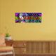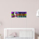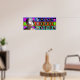 Pour cela, je propose un cadre (et même plusieurs cadres superposés et légèrement transparents) pour créer une composition unique et originale. Ces cadres sont au nombre de 24 pour les 24 heures de la journée humaine.Ces cadres sont de formes géométriques: cercle, carré et octogone. Les cercles se déclinent en dégradé dans les tons de bleu et de pourpre, les carrés dans les tons orangés rouges et les octogones passent du vert au violet.Le choix des couleurs et des formes s'accordent en 3 types de "moment" constituant un jour: soit 8heures de sommeil, 8 heures de travail et 8 heures de "détente", les repas sont comptés dans ce moment détente A cela s'ajoute 7 "Objets" (à la fois des objets que j'ai possédé ou qui étaient chez moi, que j'ai pris en photo et quelquefois des morceaux de mes propres travaux: ici il s'agit d'un série de livres miniatures. L'image de la poupée est une oeuvre en céramique qu'une amie artiste australienne m'a donnée. Chaque élément (cadre coloré et objets) sont modifiables en taille, ils peuvent être changés de place. Ainsi on peut modifier l'ordre des superpositions de couleur. Avec 31 calques les possibilités deviennent énormes. Ce premier panneau est un panneau test, qui me permettra d'affiner et de modifier mes images. L'idée de départ étant plus complexe et faisant intervenir les fuseaux horaires du lieu des amateurs d'Art potentiels, je n'ai conservé que les cadres. ----- Poster 32"x12" - Available in canvas print.