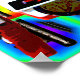 Projet conceptuel utilisant les outils créatifs de Zazzle. Ce projet part de l'idée de proposer aux amateurs d'Art un travail participatif. Pour cela, je propose un cadre (et même plusieurs cadres superposés et légèrement transparents) pour créer une composition unique et originale. Ces cadres sont au nombre de 24 pour les 24 heures de la journée humaine.Ces cadres sont de formes géométriques: cercle, carré et octogone. Les cercles se déclinent en dégradé dans les tons de bleu et de pourpre, les carrés dans les tons jeunes orangés et les octogones passent du vert au violet en passant par le bleu.Le choix des couleurs et des formes s'accordent en 3 types de "moment" constituant un jour: soit 8heures de sommeil, 8 heures de travail et 8 heures de "détente", les repas sont comptés dans ce moment détente A cela s'ajoute 7 "Objets" (à la fois des objets que j'ai possédé ou qui étaient chez moi, que j'ai pris en photo et quelquefois des morceaux de mes propres travaux: ici il s'agit d'un série de livres miniatures. Chaque élément (cadre coloré et objets) sont modifiables en taille, ils peuvent être changés de place. Ainsi on peut modifier l'ordre des superpositions de couleur. Avec 31 calques les possibilités deviennent énormes. Ce premier panneau est un panneau test, qui me permettra d'affiner et de modifier mes images. L'idée de départ étant plus complexe et faisant intervenir les fuseaux horaires du lieu des amateurs d'Art potentiels, je n'ai conservé que les cadres.