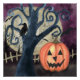The image of a Jack O'Lantern, crow, yellow moon, gnarled tree and purple sky conjures up a spooky and eerie atmosphere, perfect for Halloween.