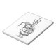 Vintage line drawing of round faced gnome playing a set of over sized bagpipes.