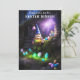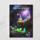 Gnome at Night & Eggs Easter Dinner Invitation. Make this for brunch or breakfast. Gnome holding a basket of Easter eggs at night by his home. Personalize this template with text on the front and back of the card. Edit it to make more changes.