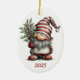 Gnome Ceramic Oval Christmas Ornament