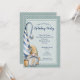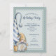 Un joli gnome barbu et un sapin de Noël sur des rayures de bleu, bronzé et vert avec vos détails de fête de Noël en lettres chic, parfait pour vos invitations de fête de bureau, invitations de fête de Noël et plus encore. CORRESPONDRE des articles dans notre magasin.