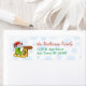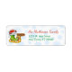 This festive Holiday return address label has an image of a little white bearded gnome elf inside a green elf shoe shaped skate. The gnome holds a string of Christmas lights, and a wood sign next to the skate points the way to Santa. Your text is in red and green at the right side. The image and text are placed on a subtle blue snowflake background. Cute!