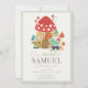 This cute and modern "do you gnome it?" kid's 1st/first birthday invitation features a gnome standing in front of his mushroom house with mushrooms on a cream background framed by a light green border. The reverse side features a light green background with mushroom patterns. Personalize it for your needs. You can find matching products at my store.