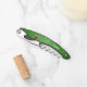 This corkscrew is green with fancy green swirls and a little gnome in a red Christmas Stocking with holly leaves and two candy canes. Customize your name with the templates on the front and back.