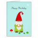 Gnome joyeux mignonne avec fer à cheval et trèfle à quatre feuilles Carte d'anniversaire. Le texte peut être personnalisé.