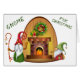 Cette jolie carte de voeux de Noël a une scène de cheminée confortable sur le devant. Deux petits gnomes se rassemblent autour ; l'un tient une cloche ornée du personnel et fait des vagues. L'autre est assis à fumer sa pipe. Le texte vert en haut dit "GNOME pour NOËL". L'intérieur a plusieurs champs de texte pour vous de customiser, plus une image d'un autre gnome tenant une guirlande de poinsettia rouge. Un yak heureux se tient à côté de lui. Amusant, et vous pouvez faire dire tout le texte que vous voulez.