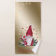 Gnome,Pine Tree Branches,Snowflakes,Gold Christmas Bath Towel Set