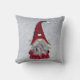 Cute winter grey bearded gnome wearing a plaid outfit with snowflakes and a heart on his cap throw pillow.