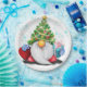 Gnome with Christmas Tree Hat and Gift For You Paper Plate