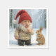 Gnome With Enjoying a Candy Cane In Snowy Forest Napkin