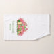 Un ensemble de serviettes de bain gnome adorable gnome doux dans des gnomes roses et verts et des florales. L'ensemble de bain comprend une serviette de bain, une serviette de toilette et un gant de toilette. Peut également être acheté séparément.