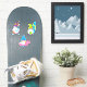 Funny sticker set of 3 adorable beach vacation gnomes. The cheeky little gnomes are dressed in the colourful beach clothes and each one is kitted out for fun activities. One gnome is surfing, another is snorkelling, and the third gnome is playing with a unicorn inflatable ring.