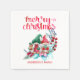 Cute little gnomes with red and green hats stand on poinsettias, and fir twigs and hold a Christmas tree and a lantern in their hands