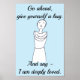 These poster encourage were designed to encourage people to give themselves a hug, and say, I am deeply loved. The text at the top of the poster says, Go ahead, give yourself a hug. The text at the bottom says, And say - I am deeply loved. There is a simple outline drawing of a person giving themselves a hug in the middle of the poster. The background colour is light blue. Purchase at PositiveAffirmaiton on Zazzle.