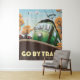 Go By Tram, vintage cartoon travel poster featuring an old vintage Tram.
