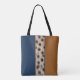 A contemporary geometric pattern, this fashion forward shoulder bag has angled colour block with Cheetah print and faux leather. Personalize with monogram for a custom tote that makes a wonderful gift or a nice gift to yourself.