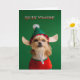 This Christmas card says it all with the hopes that no one will be offended. This small dog is actually wearing an elf outfit complete with elf ears. It’s hat is cone shaped red and green and a matching sweater to boot. Give your friends a laugh this season with this holiday card which was created by Jacqueline Sleter.
