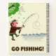 Go fishing , cute cartoon vintage or retro fisherman travel poster.