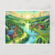 Share the message of sustainability with this Go Green themed postcard! Designed in a 16-bit pixel art style, this vibrant eco-friendly scene features lush green forests, a crystal-clear river, and a sustainable village with solar panels, wind turbines, and bicycle paths. The retro gaming aesthetic adds a nostalgic yet meaningful touch to the environmental message.