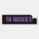 Bumper sticker shown in black/purple with text "Go Huskies"