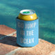 Vacation beach house or condo can cooler is the colour of the sea. With a blue background and extra bold typography "Go jump in the ocean" covers most of one side of the cooler cover. Get in the spirit of the weekend with this funny whimsical can holder.