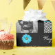 Add a personal touch to your gift giving. A super cute & girly gift wrap...cute blue daisies, black & white stripes, white flowers on black, with photo and text personalization.